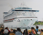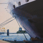 schilderijen van de maiden call in Rotterdam van Queen Mary2 in 2004